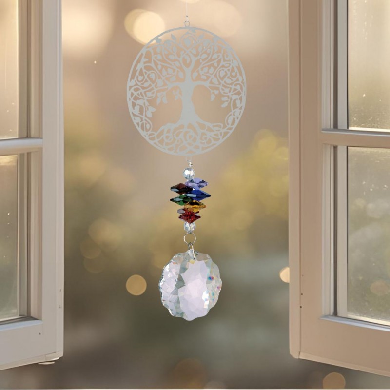 Descubre el mágico Atrapasol Árbol de la Vida y deja que la luz del sol llene tu hogar de colores y significado. Este encantador atrapasol, de aproximadamente 40 cm de largo, es perfecto para colgar en la ventana de tu cocina, sala de estar, dormitorios o cualquier otro espacio que desees embellecer. Su cristal facetado proyecta un impresionante arco iris cuando los rayos del sol lo atraviesan, inundando tu hogar con una sinfonía de colores vibrantes que alegrarán tu día.