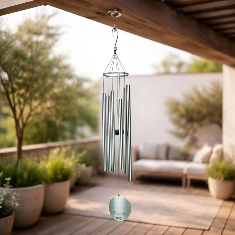 Este producto artesanal ofrece una calidad impecable con sus seis tubos sonoros de aluminio parcialmente reciclado, cuidadosamente acabados con un revestimiento en polvo de alta calidad. Las gruesas paredes de los tubos garantizan un sonido duradero y cada tubo de sonido individual está afinado con precisión. Además, es versátil, ya que puede utilizarse tanto en interiores como en exteriores protegidos. Además, cuenta con una pieza ajustable para silenciar la campanilla y un gancho curvado de aluminio S que facilita su colocación en el alero del tejado o en los árboles. Una elección perfecta para añadir un toque especial a tu espacio.