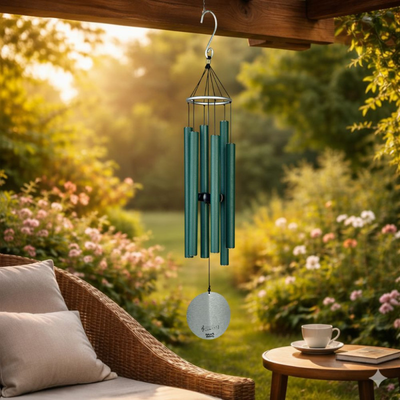La campana de viento AUREOLE combina precisión acústica, belleza estética y sostenibilidad. Con 6 tubos de aluminio afinados a mano, este carrillón produce sonidos claros, suaves y profundos, capaces de transformar cualquier espacio en un rincón de serenidad y equilibrio.