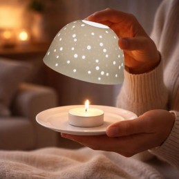 Aparte de con una vela de té el Dome Light puede ser utilizado también con una Base Led (Pilas 2 x AA no incluidas), o una base de madera para enchufar. Estos complementos puedes encontrar en la Categoría Accesorios en nuestra tienda.
