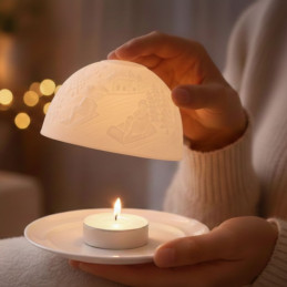 Estos atractivos Dome Lights están hechos de porcelana biscuit con muchos atractivos diseños. Objetos luminosos de porcelana blanca con motivos atractivos de la naturaleza, el arte, los temas modernos y otros motivos estacionales en relieve muy fino, que se iluminan con una vela de té o led muestran su encantador motivo.