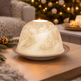 Dome Light que nos enseña toda la diversión en la nieve con este Paseo en trineo. Un motivo muy hermoso, que rodea toda la cúpula, para la temporada de frío. Los Dome Lights están disponibles con muchos motivos diferentes y por lo tanto son una popular pieza de coleccionista. Encontrarás un motivo adecuado para cada estación, así que puedes llevar una luz acogedora a tu casa o regalar algo especial no sólo en Navidad. Aparte de una vela de té el Dome Light puede ser utilizado también con una Base Led (Pilas 2 x AA no incluidas), o una base de madera para enchufar. Estos complementos puedes encontrar en la Categoría Accesorios en nuestra tienda.