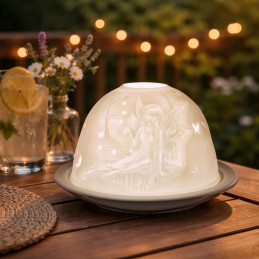 Estos atractivos Dome Lights están hechos de porcelana biscuit con muchos atractivos diseños. Objetos luminosos de porcelana blanca con motivos atractivos de la naturaleza, el arte, los temas modernos y otros motivos estacionales en relieve muy fino, que se iluminan con una vela de té o led muestran su encantador motivo.