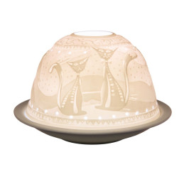 Dos gatos sentados son el motivo de este Dome Light. Iluminado con una vela de té no solo para amantes de estos animales. Los Dome Lights están disponibles con muchos motivos diferentes y por lo tanto son una popular pieza de coleccionista. Encontrarás un motivo adecuado para cada estación, así que puedes llevar una luz acogedora a tu casa o regalar algo especial no sólo en Navidad.