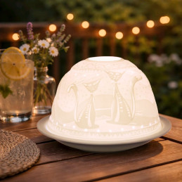 Estos atractivos Dome Lights están hechos de porcelana biscuit con muchos atractivos diseños. Objetos luminosos de porcelana blanca con motivos atractivos de la naturaleza, el arte, los temas modernos y otros motivos estacionales en relieve muy fino, que se iluminan con una vela de té o led muestran su encantador motivo.