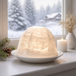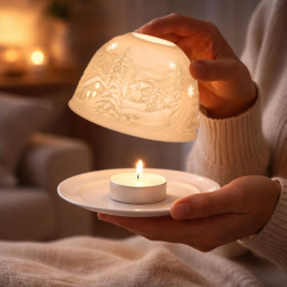 Estos atractivos Dome Lights están hechos de porcelana biscuit con muchos atractivos diseños. Objetos luminosos de porcelana blanca con motivos atractivos de la naturaleza, el arte, los temas modernos y otros motivos estacionales en relieve muy fino, que se iluminan con una vela de té o led muestran su encantador motivo.