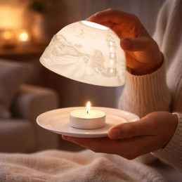 Al encender la vela, la porcelana cobra vida: el faro brilla como guía, las olas parecen moverse y el ambiente se llena de una luz suave que invita a la serenidad. Es el complemento perfecto para crear atmósferas acogedoras en el salón, dormitorio o terraza, y para acompañar momentos de lectura, meditación o cenas especiales.