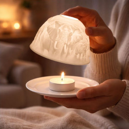 Estos atractivos Dome Lights están hechos de porcelana biscuit con muchos atractivos diseños. Objetos luminosos de porcelana blanca con motivos atractivos de la naturaleza, el arte, los temas modernos y otros motivos estacionales en relieve muy fino, que se iluminan con una vela de té o led muestran su encantador motivo.
