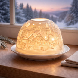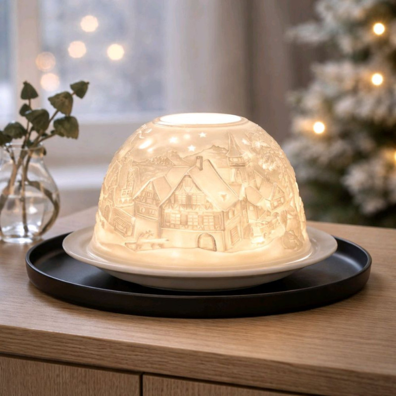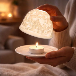 Estos atractivos Dome Lights están hechos de porcelana biscuit con muchos atractivos diseños. Objetos luminosos de porcelana blanca con motivos atractivos de la naturaleza, el arte, los temas modernos y otros motivos estacionales en relieve muy fino, que se iluminan con una vela de té o led muestran su encantador motivo.