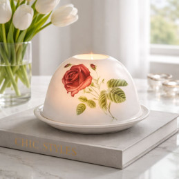 Estos atractivos Dome Lights están hechos de porcelana biscuit con muchos atractivos diseños. Objetos luminosos de porcelana blanca con motivos atractivos de la naturaleza, el arte, los temas modernos y otros motivos estacionales en relieve muy fino, que se iluminan con una vela de té o led muestran su encantador motivo.