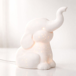 Descubre el encanto delicado de la porcelana con nuestra lámpara decorativa “Elefante de Luz”, una pieza que une diseño, emoción y funcionalidad. Esta luminaria en forma de elefante, realizada en porcelana blanca biscuit de alta calidad, se convierte en un foco de luz suave e indirecta que embellece cualquier espacio.