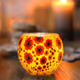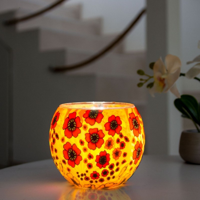 Portavela cristal luminiscente GLOBO · Flor Amapolas