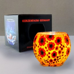 Amapolas grandes y pequeñas iluminadas por una vela de té encantan en este cristal luminiscente. Cristales luminiscentes del díametro 11 cm, bellezas decorativas para regalar o el hogar en cualquier época del año. Serie de cristales luminiscentes para coleccionistas y amantes de las cosas bellas para un ambiente encantador. Debido a su libertad de movimiento se pueden llevar fácilmente adonde quieras. Al atardecer en la terraza para una cena romántica, en el camping... Dondequiera que quieras, un motivo siempre encaja.