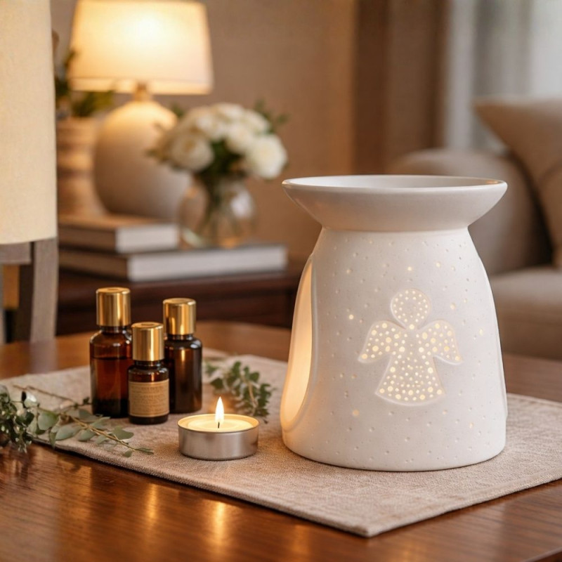 Llena tu espacio de calma, luz y protección con el quemador de aceite Ángel. Su delicado diseño calado con forma de ángel transmite una sensación de paz que envuelve cada rincón con suavidad.