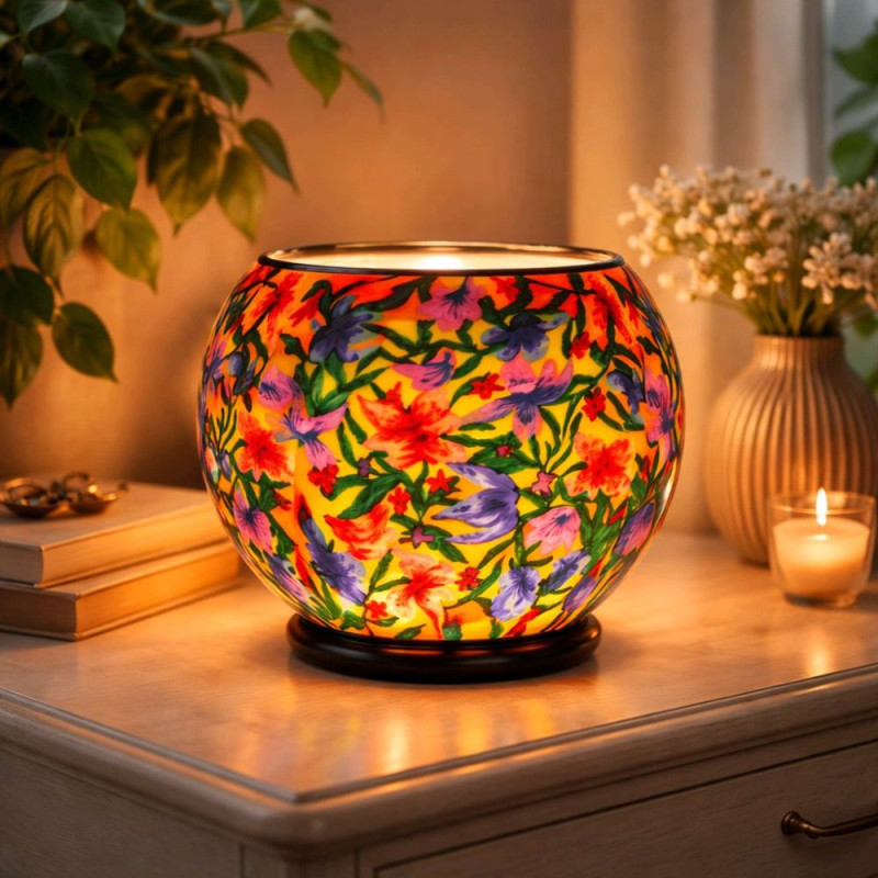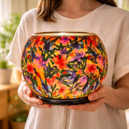 · Cristal de Alta Calidad: Un cuerpo de 30 cm que permite que los tonos rojos, naranjas y verdes brillen con una luminosidad sorprendente, creando un efecto tridimensional de un jardín en flor.