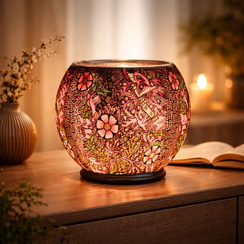 ·Cristal de Alta Calidad: Un cuerpo de 30 cm que realza los detalles de las flores en tonos pastel y ocres, proyectando una luz suave y difusa por toda la estancia.